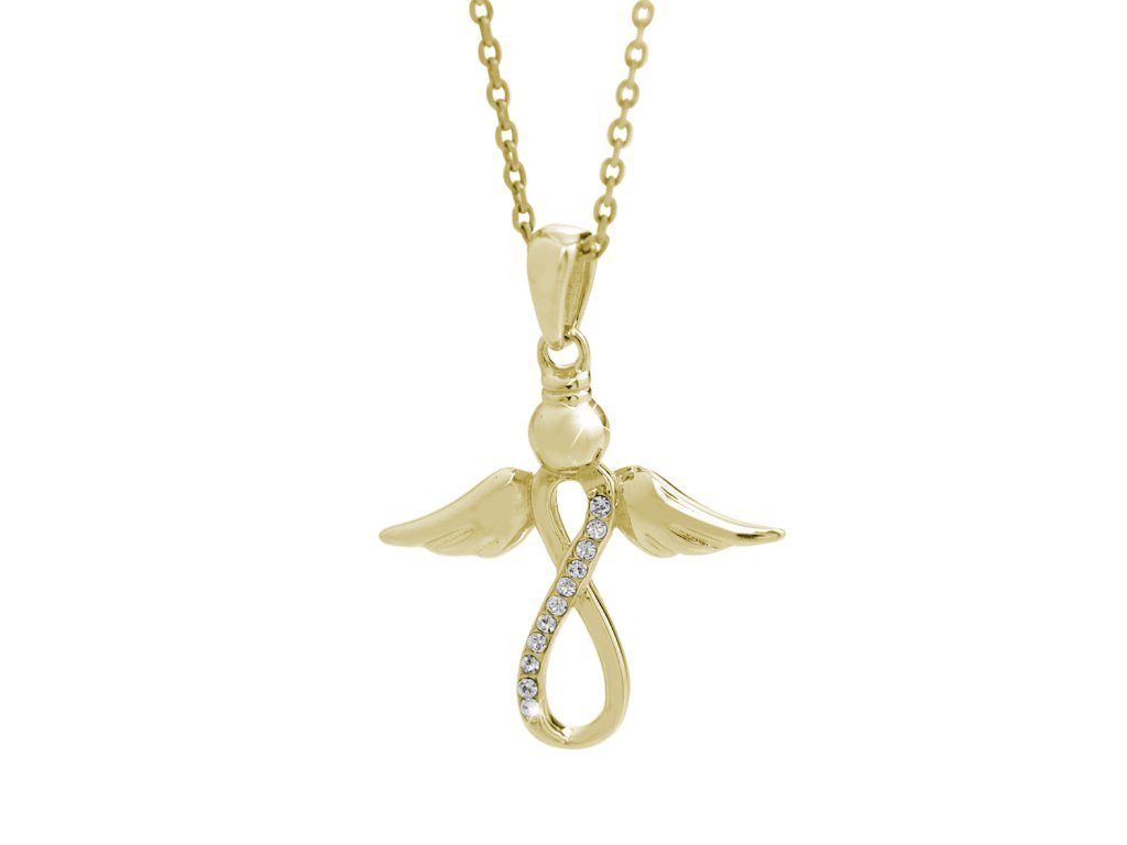 JSB Bijoux pozlacený stříbrný náhrdelník Anděl nekonečno s krystaly Swarovski