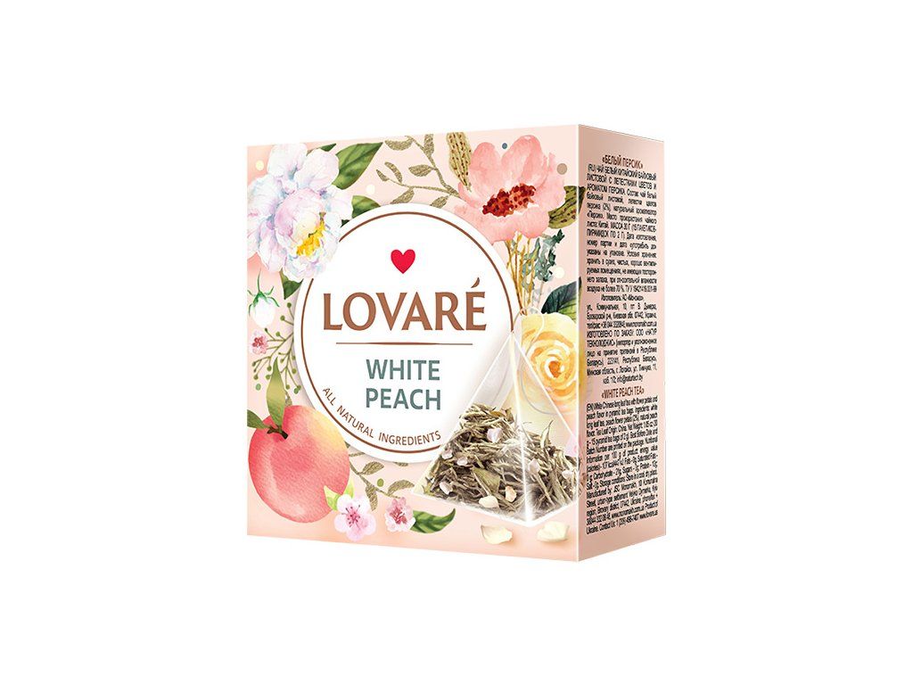 Prožijte okamžik jemného osvěžení s čajem Lovaré White Peach, který spojuje bílý dlouholistý čaj s okvětními lístky broskvového květu a přírodní příchutí broskve.