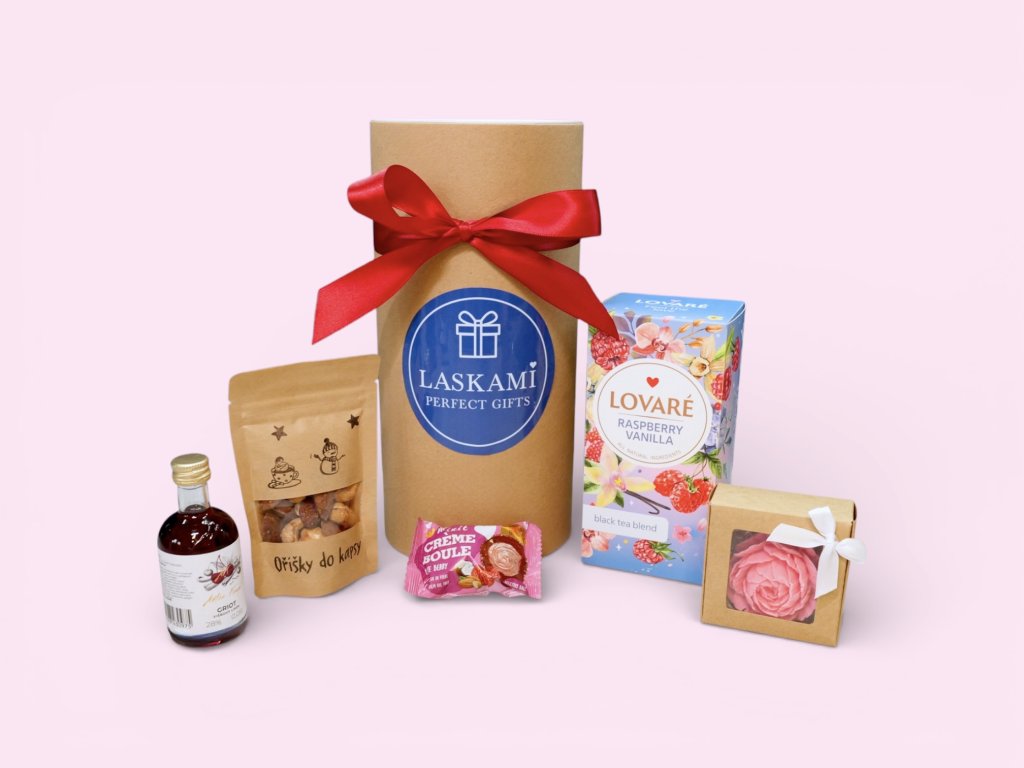 Dopřejte svým blízkým dárek, který zahřeje u srdce a každý detail zaručeně potěší. Tento stylový dárkový tubus je pečlivě sestavený tak, aby spojoval chuťové zážitky, sladké potěšení i okamžiky relaxace.