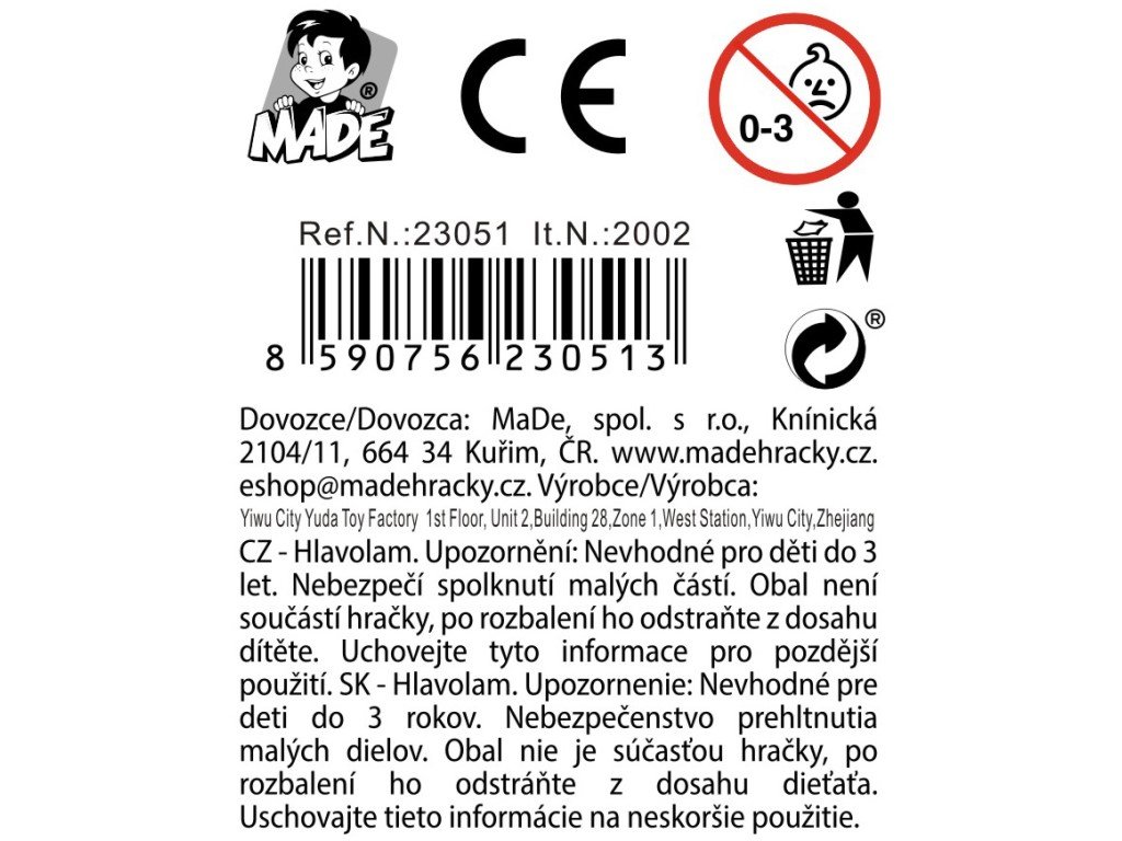 | E-mail zástupce v EU : | eshop@madehracky.cz |