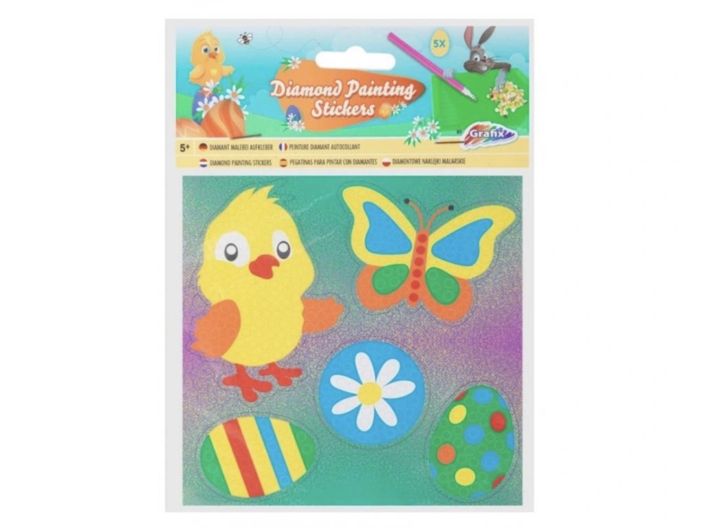Diamantové samolepky – Kuřátko jsou kreativní zábavou pro děti od 3 let. Sada obsahuje roztomilé motivy s kuřátkem a velikonočními prvky, které děti zdobí pomocí barevných diamantových kamínků. Samolepky rozvíjejí jemnou motoriku, soustředění i kreativitu a po dokončení krásně září. Hotové obrázky lze použít jako dekoraci, dárek nebo ozdobu sešitů či přání. Ideální tvoření na doma, do školky nebo jako milý dárek ✨🐥