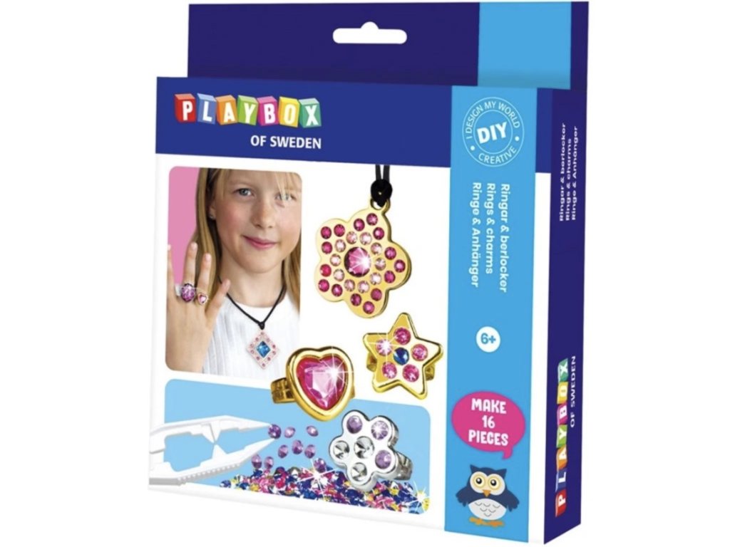 Balení obsahuje vše, co malé kreativní duše potřebují k tvorbě vlastních originálních šperků. V sadě najdete 8 prstýnků a 8 přívěsků různých tvarů, díky kterým si můžete vytvořit unikátní kombinace. Součástí je 1000 ks drobných kamínkův různých barvách a tvarech, takže každá dekorace bude jedinečná. Pro snadnou práci je přiložena pinzeta a lepidlo, které umožní bezpečné a přesné umístění kamínků.