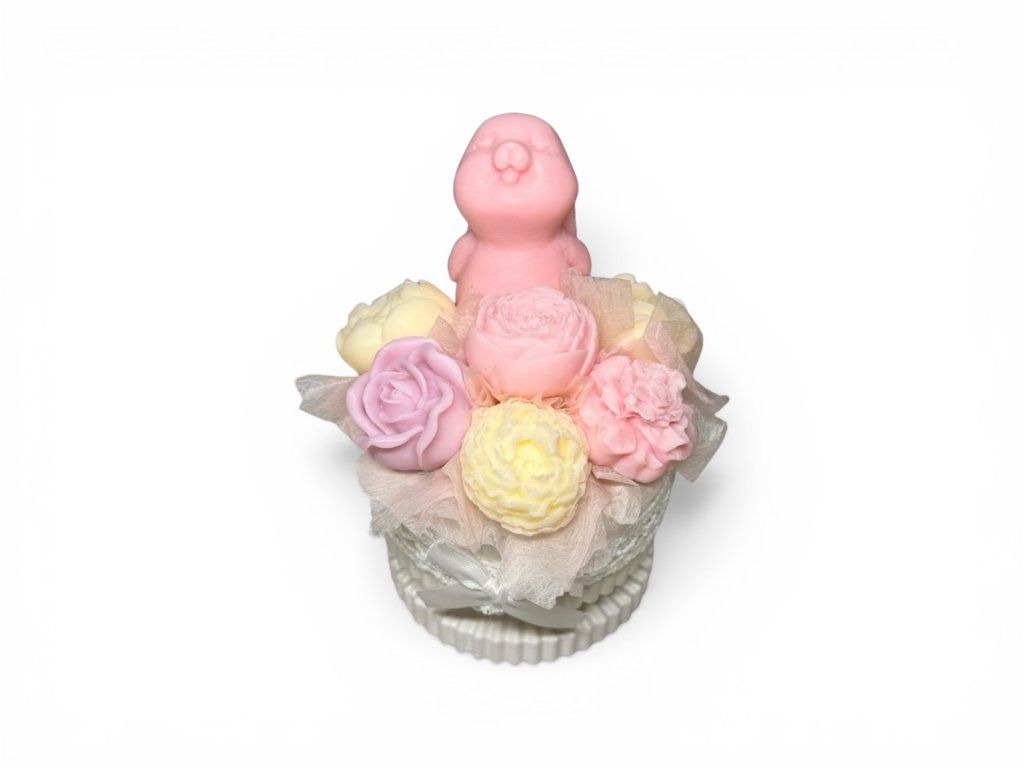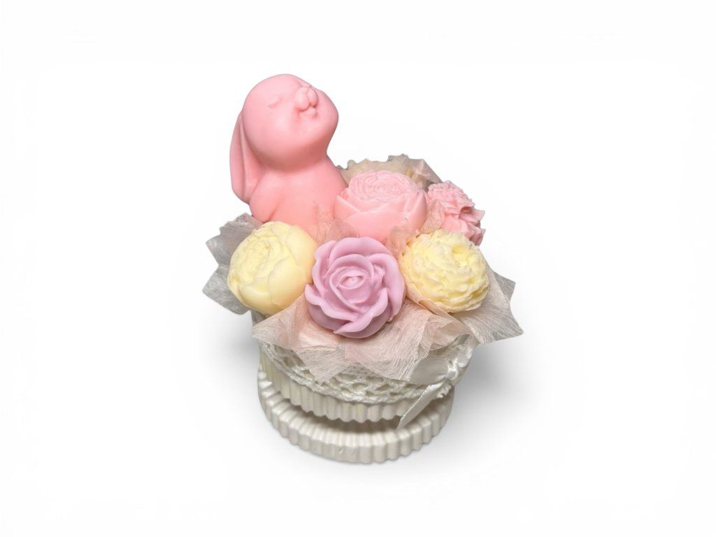 Handmade Mýdlová kompozice s pivoňky (růžový zajíc)