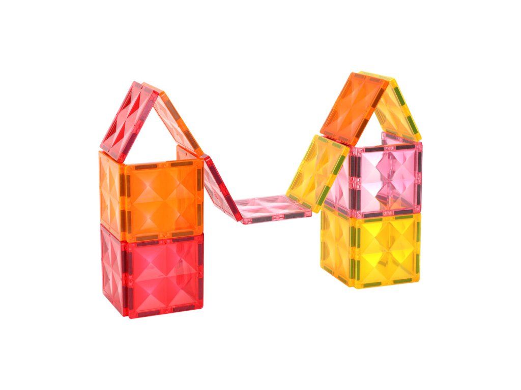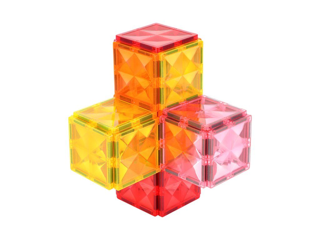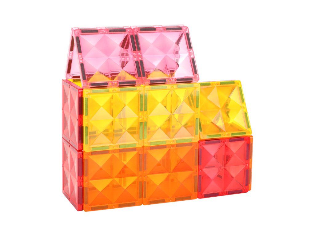 Magnetix MTX-20W je kompaktní magnetická stavebnice s velkými průhlednými dílky v teplých odstínech – červené, oranžové, žluté a růžové. Sada obsahuje 20 dílků základního tvaru čtverce, které se díky zabudovaným magnetům snadno spojují a drží pevně pohromadě.