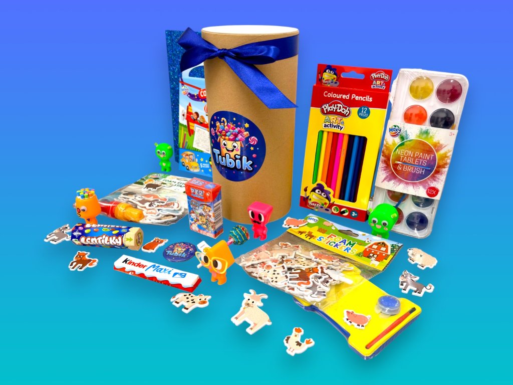 Darujte malým šikulům Tubík, který rozzáří oči ✨, probudí fantazii 🌈 a zabaví děti na dlouhé hodiny. Tento veselý kreativní balíček spojuje oblíbené sladkosti, výtvarné pomůcky a hravé doplňky, díky nimž si děti hravě procvičí jemnou motoriku, tvořivost i představivost. Ideální dárek k narozeninám, za odměnu, k Vánocům nebo jen tak – pro radost. 💡