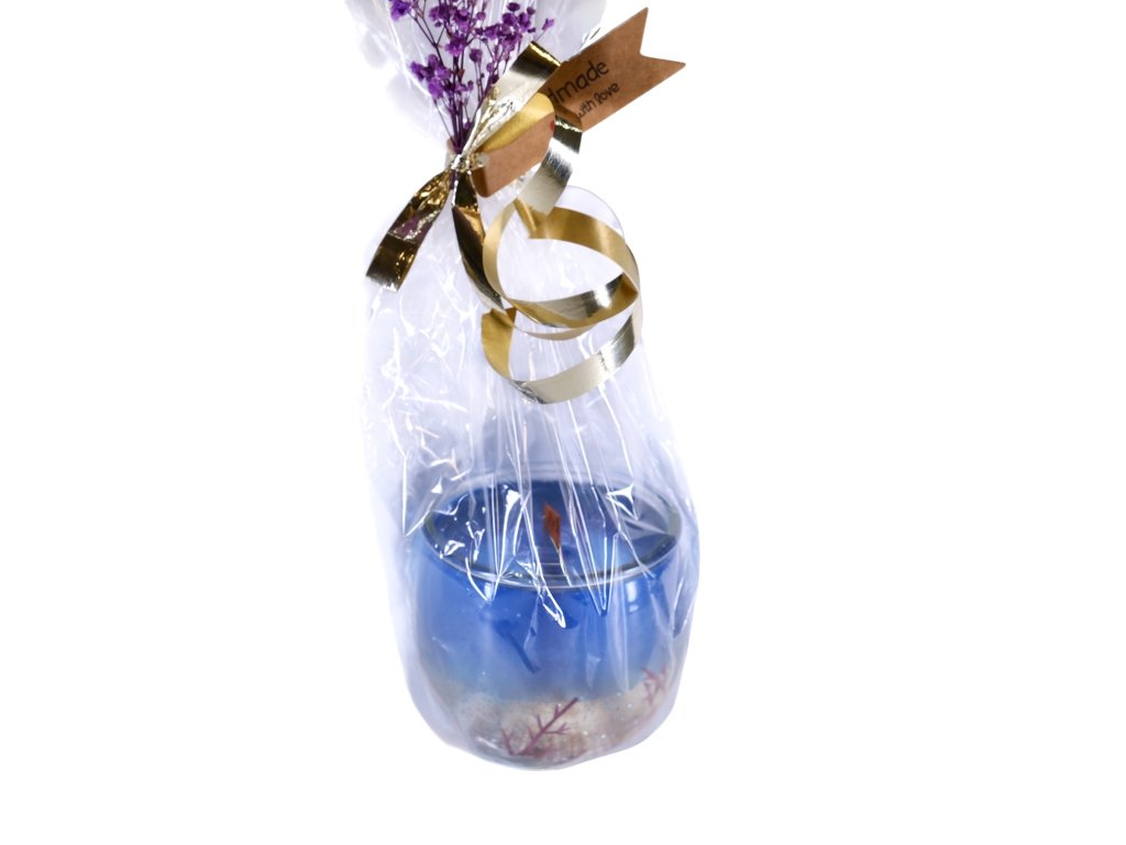 Ručně vyrobená svíčka z kvalitního čirého gelu z čištěných minerálních olejů a polymerů. Designový, originální kousek s mořským nádechem, doplněná přírodními mušličkami pro atmosféru jako na dovolené. Čisté hoření, krásný design – svíčka, která potěší smysly i interiér. Dřevěný knot při hoření vydává příjemné, jemné praskání typické pro dřevo – vytváří útulnou atmosféru a je základem silného aromatického prožitku. Pro optimální hoření by měl knot přesahovat vosk maximálně o 0,5 cm. Proto doporučujeme knot pravidelně kontrolovat a v případě potřeby zastřihnout.